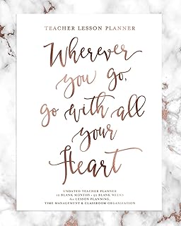 Teacher Lesson Planner, Wherever You Go, Go With All Your Heart, UNDATED Teacher Planner: Rose Gold Marble Inspirational Quote Planning Calendar Book for Teaching Elementary, Middle & High School