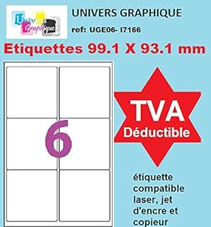300 étiquettes 99.1 x 93.1 mm étiquettes pour adresse blanches adhésives personnalisables . 300 etiquettes 99,1x93,1mm soit 50 feuilles de 6 étiquettes autocollantes pour imprimante jet d'encre et Impression laser . étiquette utilisable sur word ref UGE06- l7166