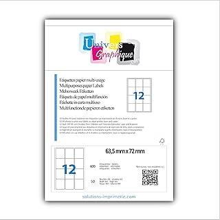 600 étiquettes 63.5 X 72 mm étiquettes pour adresse blanches adhésives personnalisables . 600 etiquettes 63,5 x 72 mm soit 50 feuilles de 12 étiquettes autocollantes pour imprimante jet d'encre et Impression laser . étiquette utilisable sur word ref UGE012- l7164