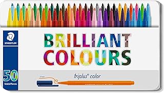 Staedtler Triplus Color, Feutres de coloriage de haute qualité, Pointe moyenne de 1 mm, Boîte en métal avec 50 couleurs lumineuses assorties, 323 M50