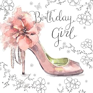 Twizler Carte d’anniversaire pour elle avec argent métallisé, effet aquarelle Motif chaussure et inscription « Birthday Girl »