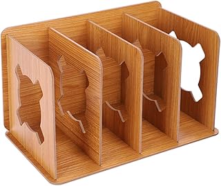 Serre-livres 4 Compartiments Porte-revues en Bois Boîtes de Rangement Organiseur de Bureau Presse-Livres Motif Creux Trieur Document Module de Classement Fichiers Livre Magazine