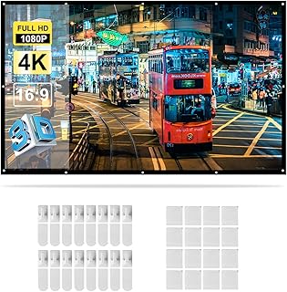 Ecran Videoprojecteur, GHKJOK 150 Pouces Ecran Projection, 16: 9 HD 3D 4K Ecran de Projection, Portable et Lavable, Un Excellent Choix pour la Projection intérieure en extérieur du Home cinéma
