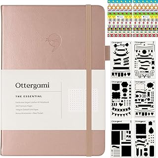 Bullet Carnet Pointillé Journal | Carnet de Notes + Pochoirs et Autocollants Bonus | The Essential de Ottergami (Or Rose)