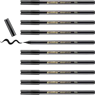 edding 1340 Feutre pointe pinceau - noir - lot de 10 feutres - pointe de pinceau flexible - feutre pour la peinture, l'écriture et le dessin - carnets, mandalas, calligraphie